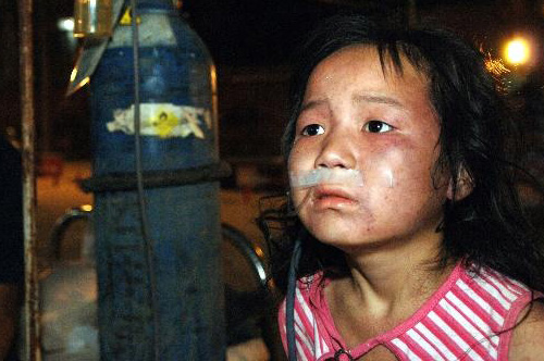 ———12日晚10時許,溫家寶等驅車趕到都江堰市聚源鎮中學,當了解到學校有上百學生被埋在廢墟下,總理動情地說。